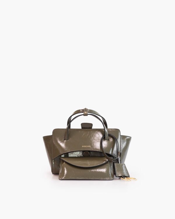 Military shoulder bag crafted in cotton canvas and leather, lined with cotton fabric.